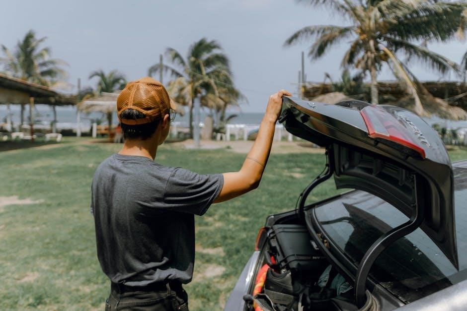 Clear the area around the vehicle’s battery of any flammable materials. Jump starting can generate sparks‚ and a safe environment is paramount. Familiarize yourself with the vehicle’s battery location and polarity (positive and negative terminals) before proceeding. Having a clear understanding of these steps will streamline the process and enhance safety.